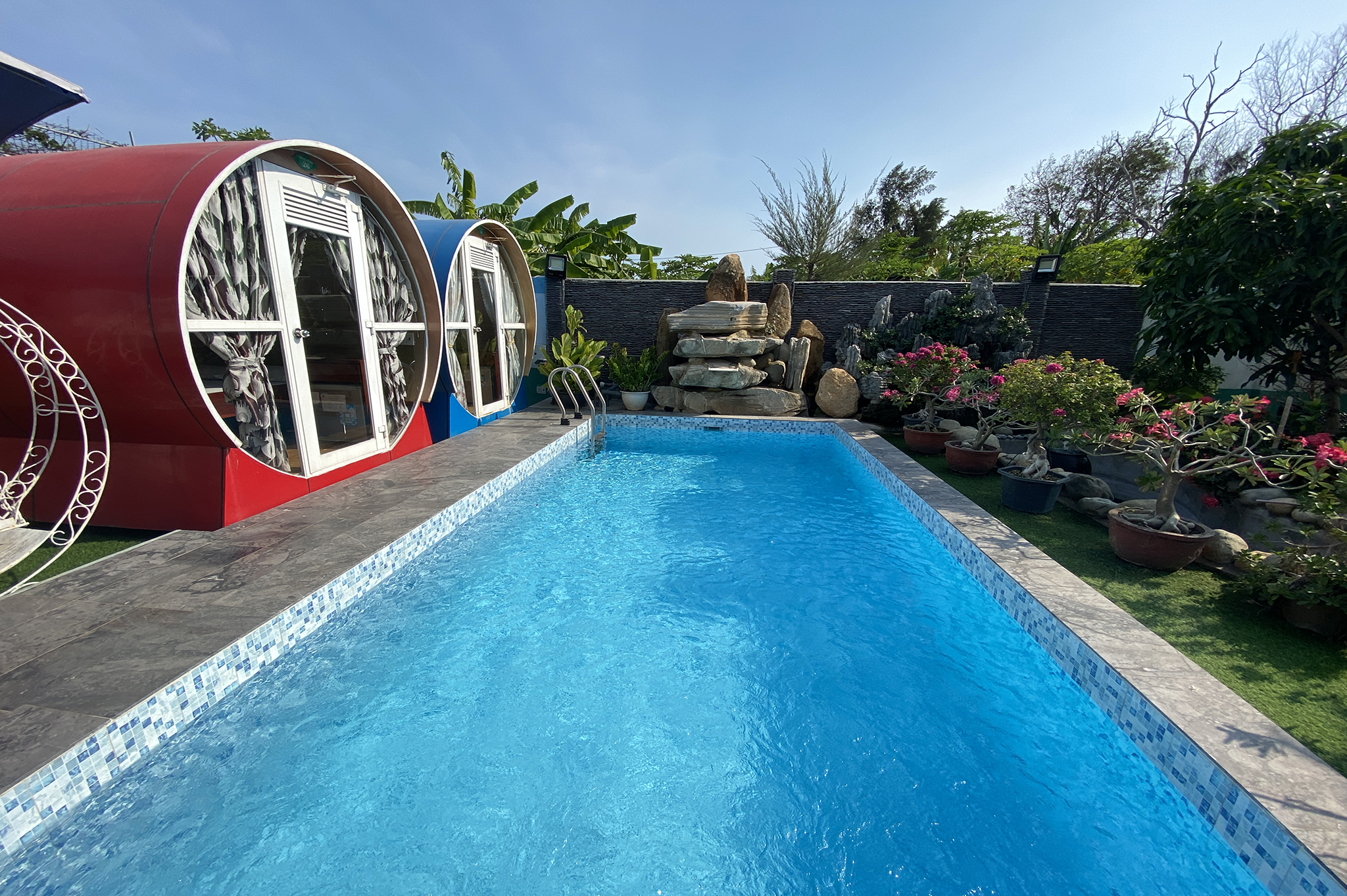 Tiện ích Wifi, Tivi, Tủ lạnh, Máy lạnh, Máy sấy tóc, Ấm nấu nước siêu tốc, Hồ bơi, Hồ câu cá, Bàn bi lắc, Ghế mát xa, Vườn rau, Vườn trái cây, Phòng bếp, Bếp BBQ, Máy giặt..